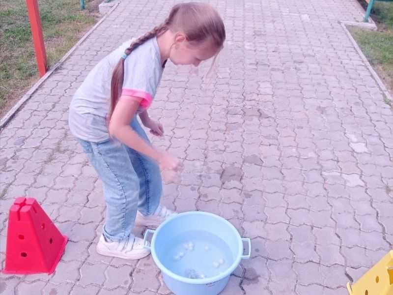 Её цель — организовать увлекательный и полезный досуг, приобщить к здоровому образу жизни, развить внимание, логическое мышление, координацию движений, ловкость и быстроту, мелкую моторику, умение действовать по сигналу. Денёк выдался теплый и солнечный, ребята с удовольствием принимали участие в играх, конкурсах и эстафетах с водой: "Водоносы","Сокровища со дна моря", "Бумажные кораблики","Подводники","Сбей мячик струёй" и многие другие игры.