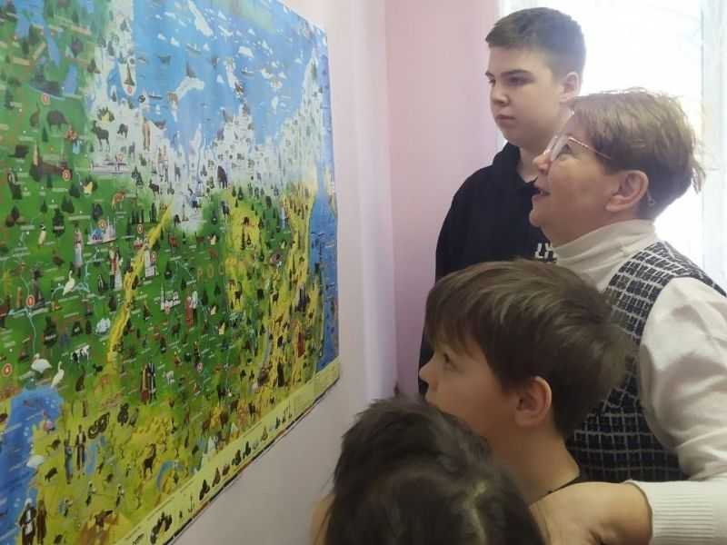 В рамках реализации программы «Народы едины под солнцем России» для ребят стационарного отделения прошло познавательное занятие с показом презентации «В дружбе народов единство России». Дети узнали, где находится наша страна, рассматривая карту России, нашли крайние точки государства: на севере – мыс Челюскин на полуострове Таймыр; на юге - на территории Дагестана, границе с Азербайджаном; на западе – на границе с Польшей; на востоке – мыс Дежнева, на полуострове Чукотка.